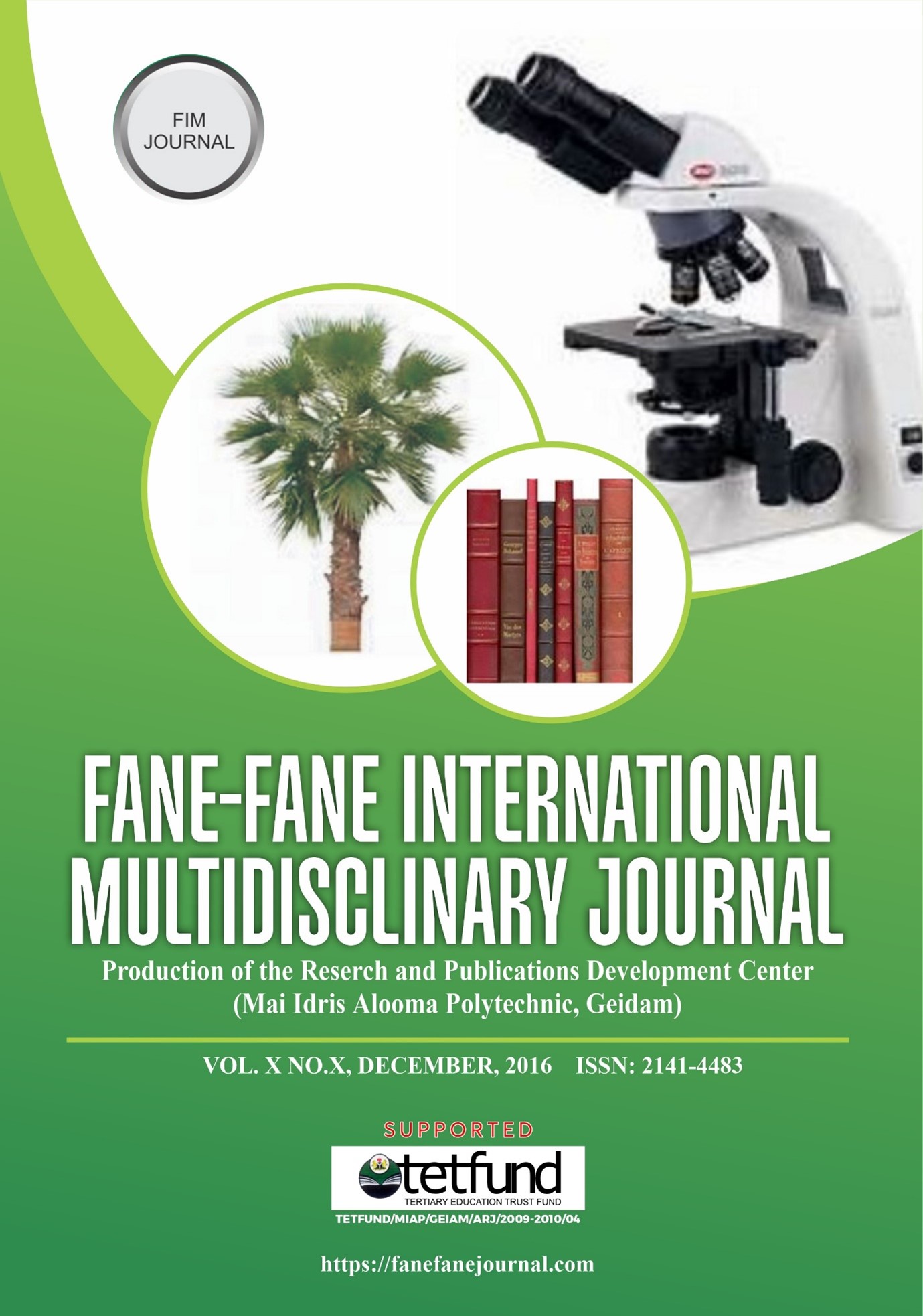 Fane-Fane International Multi-Disciplinary Journal is a peer-reviewed biannual Journal of Mai Idris Alooma Polytechnic, Geidam, Yobe State with interest in a wide range of disciplines, such as Humanities, Social sciences, Sciences, Engineering and Technology. It publishes recent findings on research conducted by researchers in various fields.